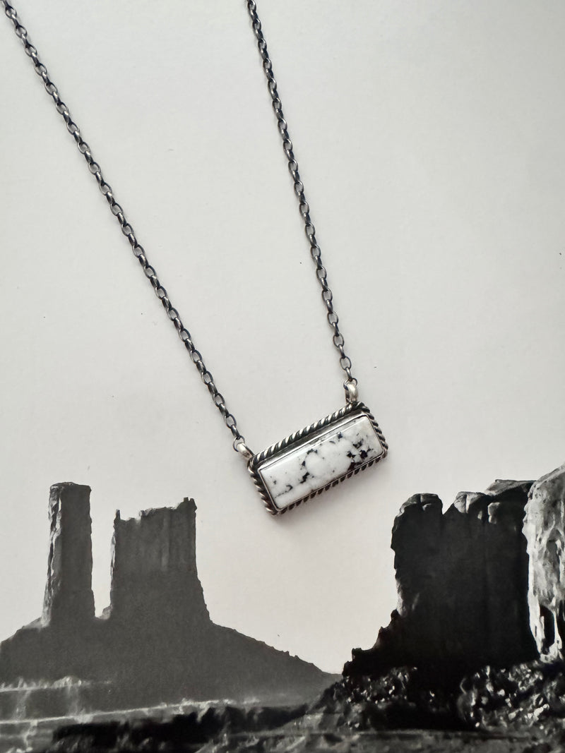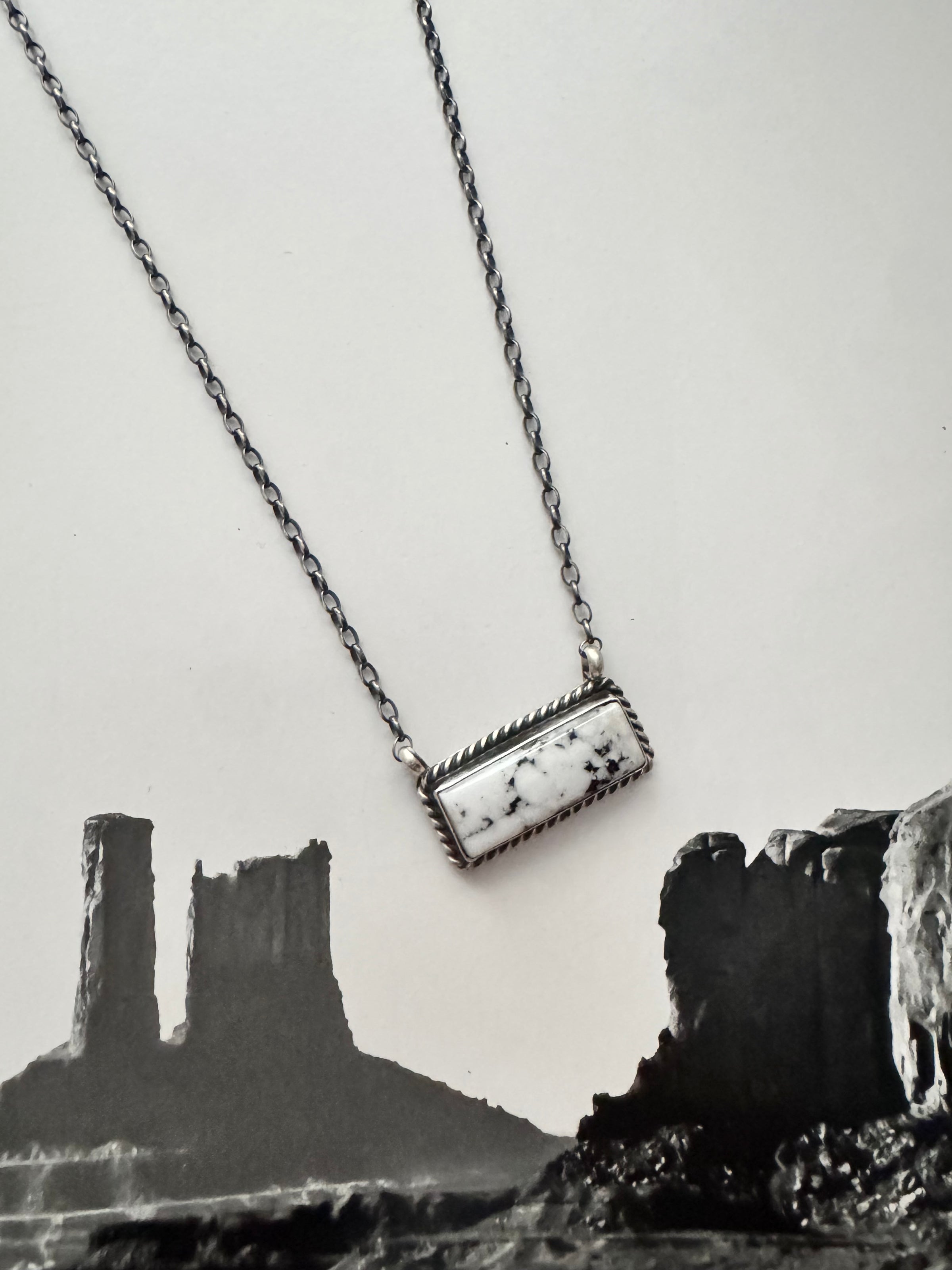 Navajo Handmade Sterling Silver White Buffalo Necklace